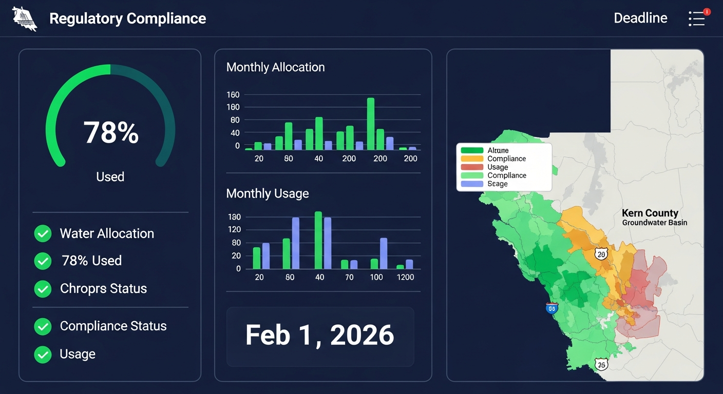 Stay compliant with California's Sustainable Groundwater Management Act. Track your water allocation, get AI-powered alerts, and avoid penalties.